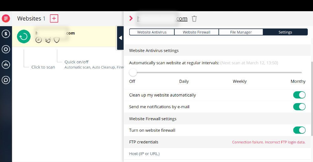 Come vedi nello screenshot di esempio, trovi tutto nello stesso posto e ben raggruppato. Il pulsante di scansione rapida che attiva la scansione manuale del sito (in aggiunta a quella automatica giornaliera).
