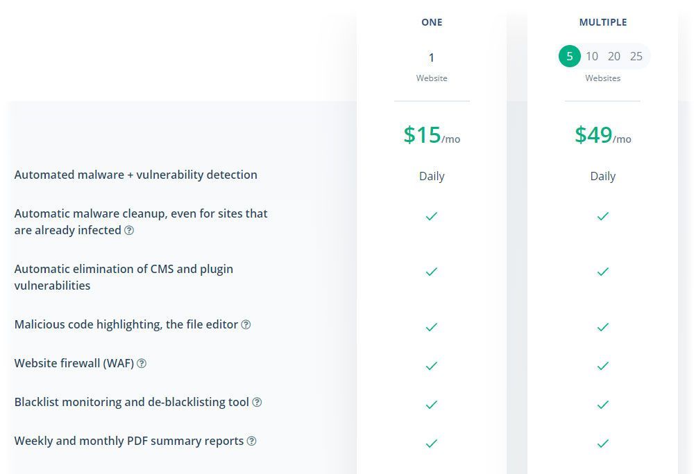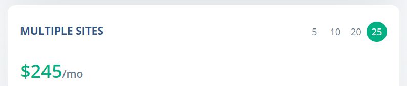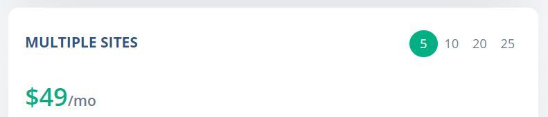 Il secondo livello è per più siti Web, ma anche all’interno di questo livello esiste un intervallo per la quantità di siti Web che si desidera proteggere. Ad esempio, ecco quanto costerebbe mettere in sicurezza fino a 5 siti Web: